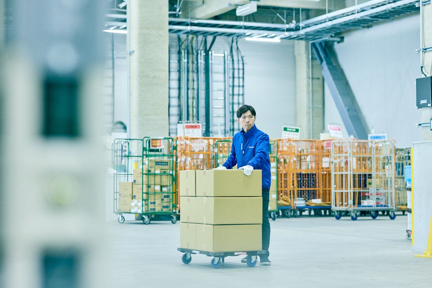 段ボールでの個口配送に加え、カゴ台車単位での輸送や、アパレル商材はハンガーにかけたままの輸送も可能です。その他、商材とご要望に応じてお客さまごとにサービスをカスタマイズします。